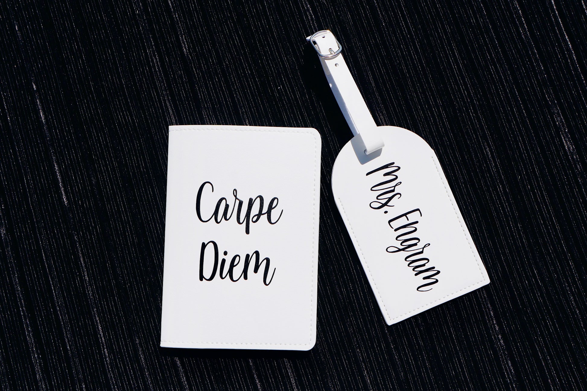A must-have for the honeymoon! This personalized passport holder and luggage tag set makes traveling as a newlywed both stylish and stress-free.